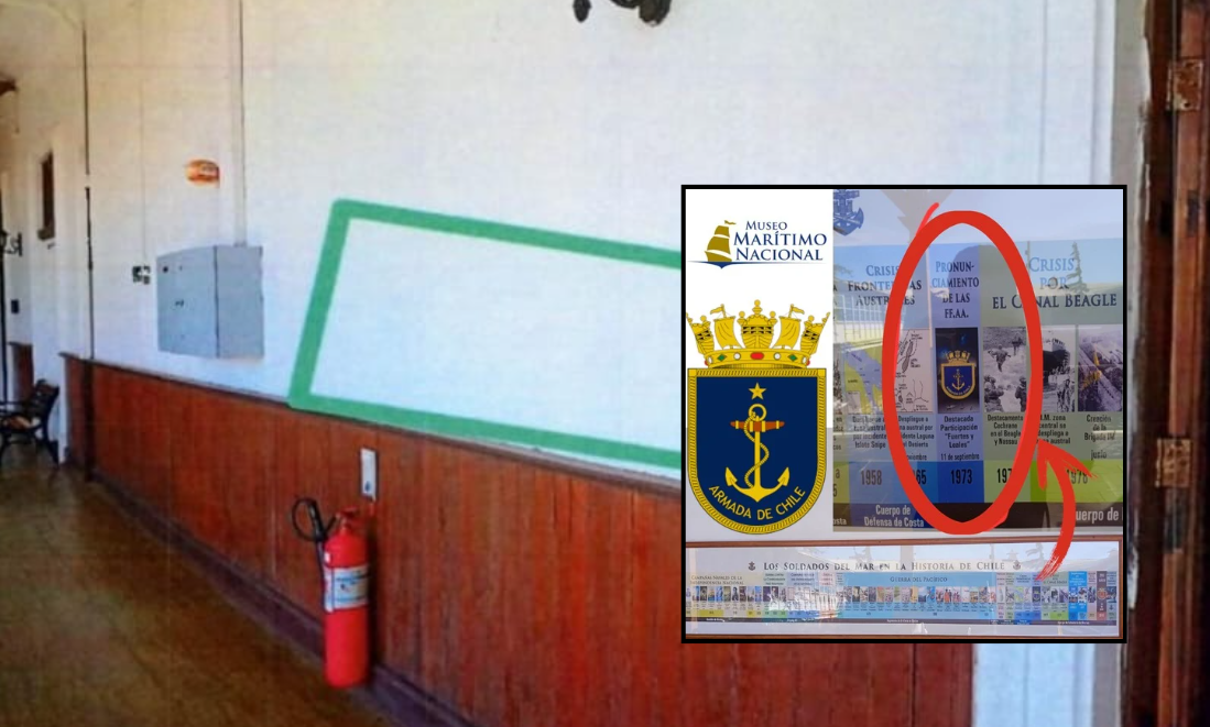En un comunicado enviado a la Corte de Apelaciones de Santiago, la Armada de Chile confirmó el retiro de una instalación ubicada en el segundo piso del Museo Marítimo Nacional, en Valparaíso. La línea de tiempo, en alusión a la participación de la Infantería de Marina en el golpe de 1973, desató controversia porque se le consideró una apología del régimen dictatorial.