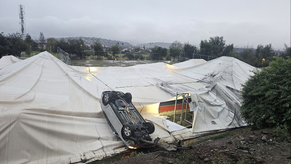 El vehículo rodó por una pendiente y cayó sobre el domo