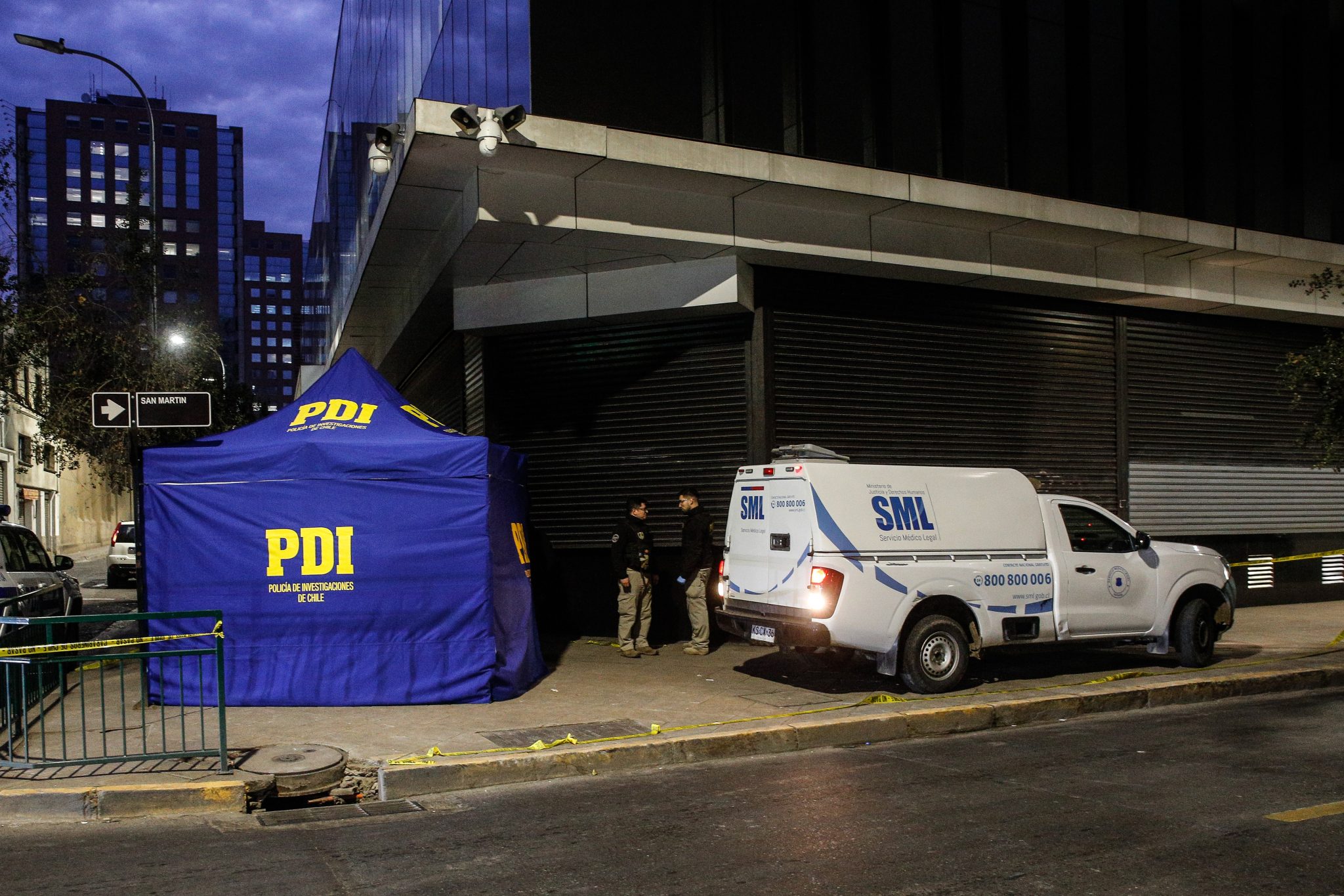 El hecho ocurrió en pleno centro de Santiago. Un tercer antisocial, al escuchar los balazos, huyó a perderse, muy asustado, pero ileso.