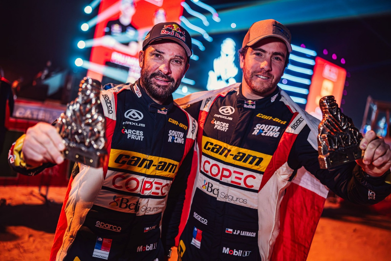 “Chaleco” y Latrach se subieron a nueve podios durante el Dakar: ganaron cinco etapas, fueron segundos en tres ocasiones y una vez fueron terceros. “Chaleco” completó 30 triunfos de etapas desde que corre el Dakar. Estuvo siete años en motos, con dos terceros puestos. En autos lleva siete carreras: tres triunfos, un segundo y un tercer lugar.