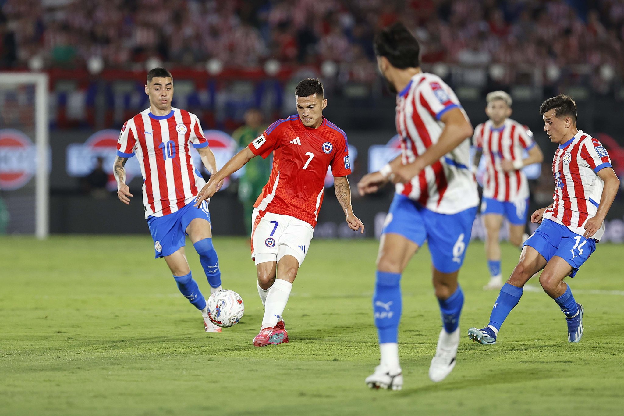 Pero no, la jugada vital llegó con el expediente más viejo de los guaraníes: una pelota parada que cayó en el área chilena y que fue desviada por dos cabezazos para la entrada libre de Alderete por el segundo palo.