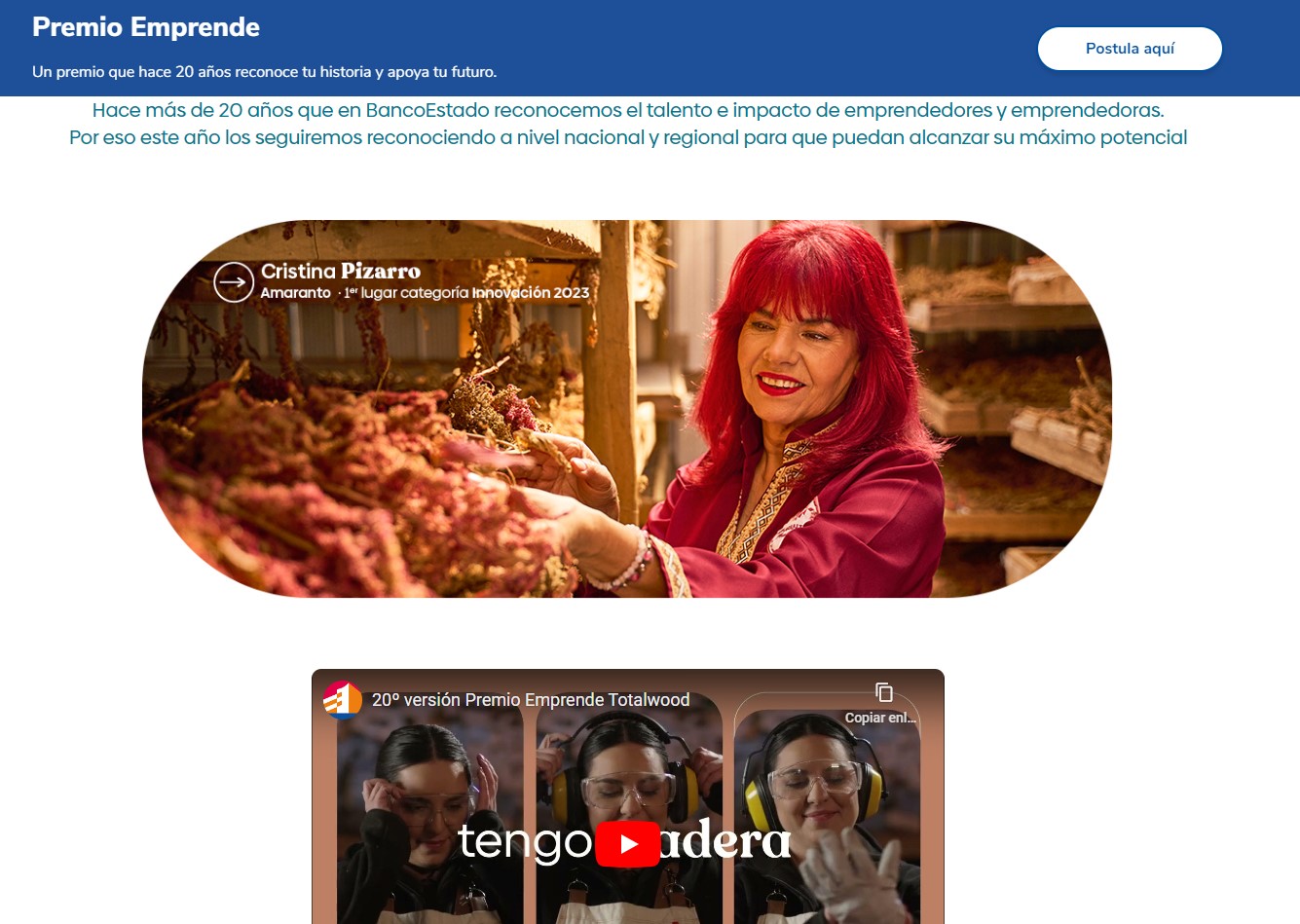 Para postular, solo necesitas entrar en la página web del banco (www.bancoestado.cl), y buscar la sección Premio Emprende 2024 (https://www.bancoestado.cl/content/bancoestado-public/cl/es/home/campanas-bancoestado—bancoestado-personas/2024/premio-emprende–un-premio-que-hace-20-anos-reconoce-tu-historia.html#/ ). Ahí puedes descargar las bases legales. Y luego presionar “Postula Aquí” y seguir las instrucciones.