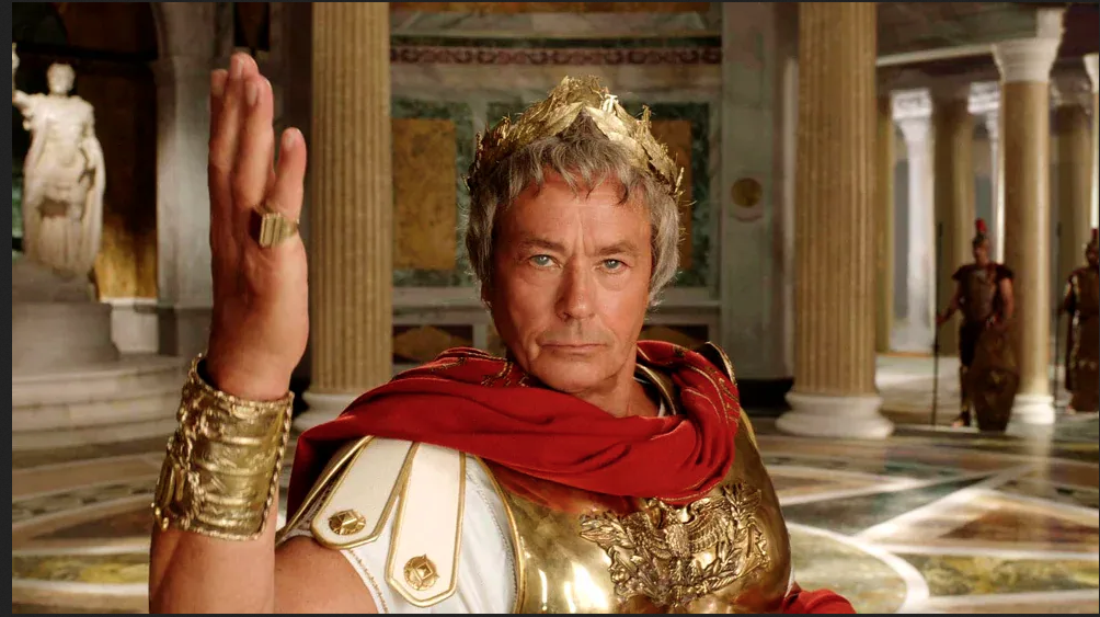Secundario en la filmografía de Delon, este filme es sobre todo simbólico (foto principal). El actor, burlado a menudo en Francia por su ego sobredimensionado y su costumbre de hablar de él en tercera persona, se reía por una vez de sí mismo en su rol de Julio César.