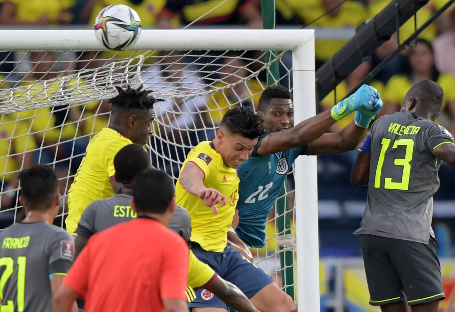 La defensa de Ecuador nunca pudo despejar y Yerry Mina convirtió de media vuelta con un remate cruzado. Una montaña de colombianos se sumó al festejo de Mina, pero entre los reclamos ecuatorianos y las dudas de Haro, el VAR ordenó una revisión: tras la mirada a la pantalla, se anuló la anotación aduciendo una mano previa del propio Mina.