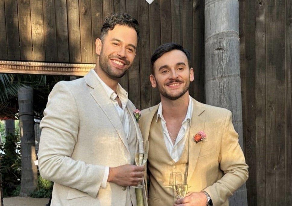 El gimnasta contrajo nupcias este viernes con su novio, en una boda que se efectuó en El Monte ante un reducido círculo de parientes y amistades.