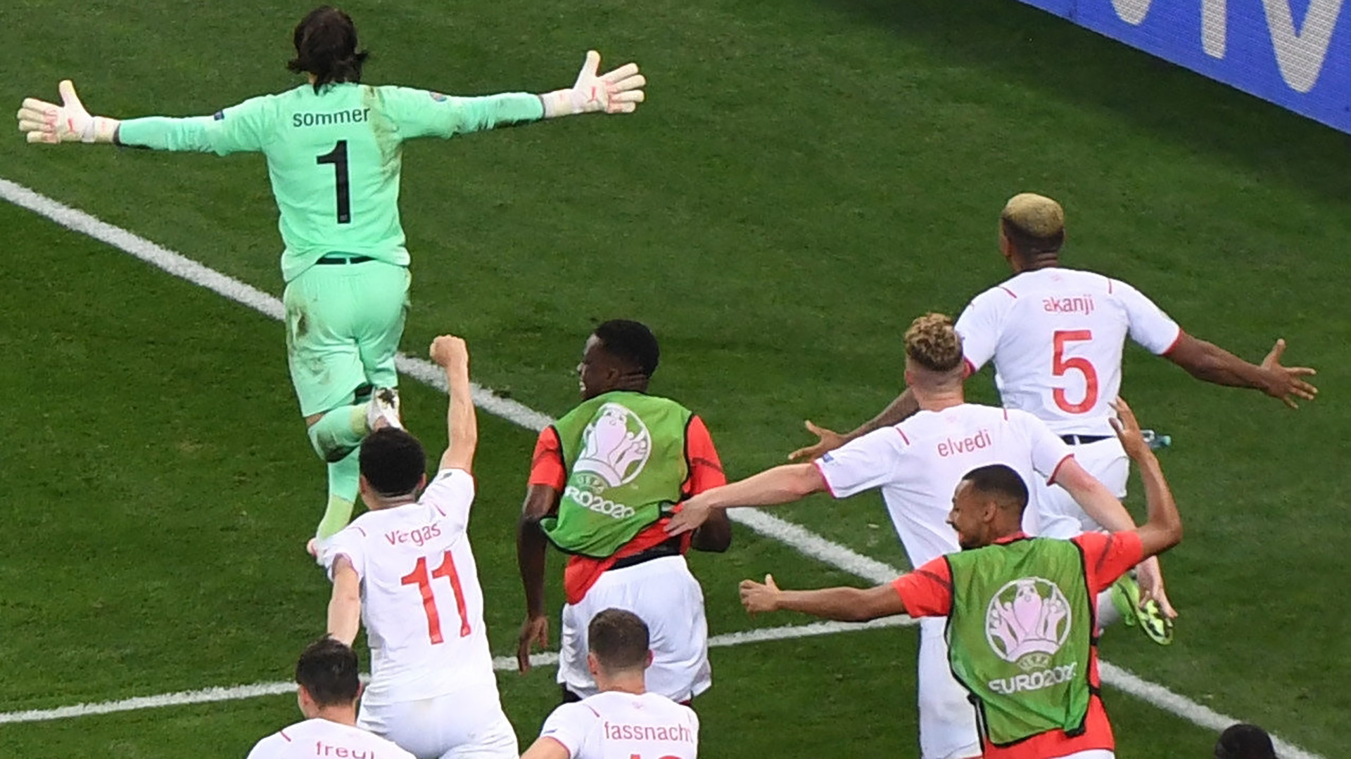 Tarjetas amarillas: Varane, Pavard (F); Elvedi, Rodríguez, Xhaka, Akanji (S).