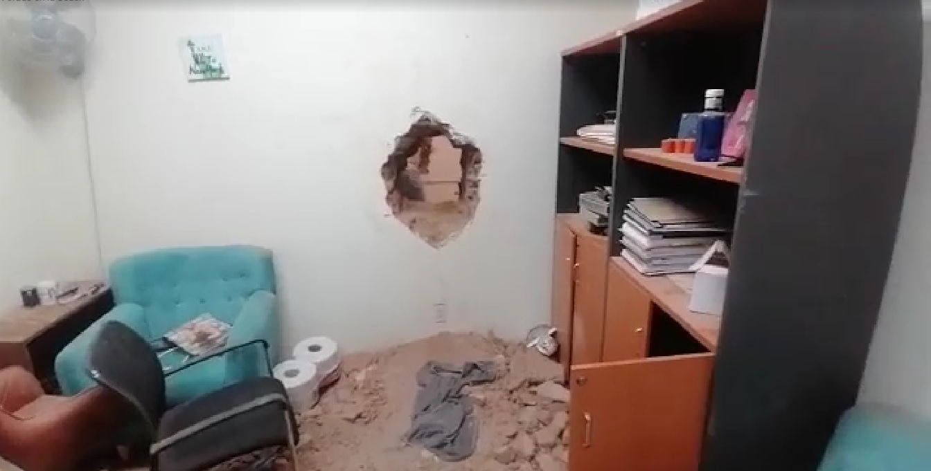 Los registros que subió Bío Bío Chile muestran que los sujetos hicieron dos agujeros: uno dentro de la oficina de la casa de estudio y otro en el perímetro, que está colindante a la ferretería.