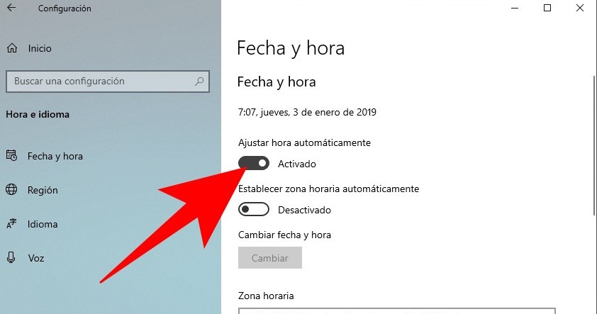 Si la hora sigue sin corregirse, desactiva las opciones anteriores y haz lo siguiente: