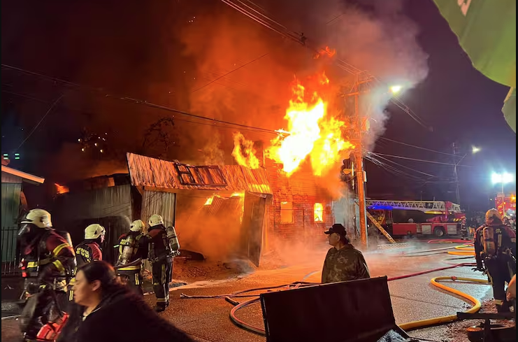 Un incendio de gran magnitud se registró en el sector Teniente Merino de Puerto Montt, dejando como saldo la muerte de un hombre y una mujer, además de tres personas hospitalizadas, entre ellas dos menores de edad de cuatro y 11 años.