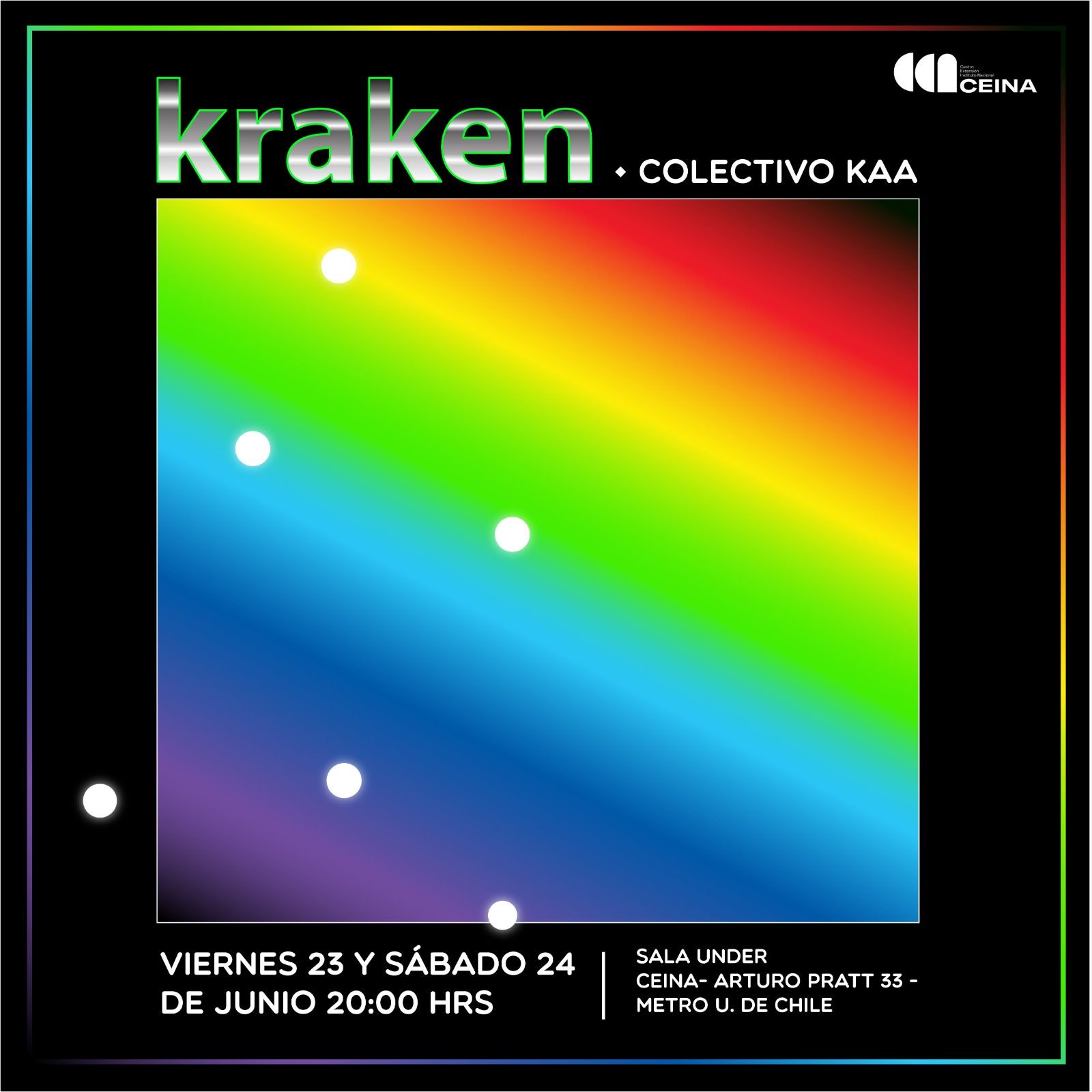 Este viernes 23 y sábado 24 de junio se presenta nuevamente en Ceina la obra transdisciplinar Kraken, del Colectivo K, obra que pone en cuestión el estatuto actual de la acción y el cuerpo en relación a las tecnologías que dominan el cotidiano.