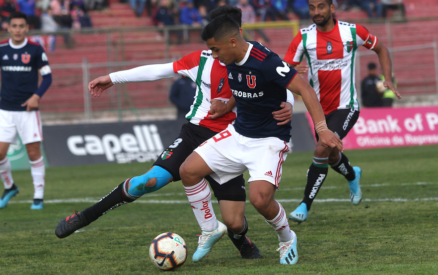 Para Palestino el elogio es mayor, ya que se sobrepuso doblemente a los golpes adversos del partido: la U anotó recién a los 3’ con un tirazo de Gonzalo Espinoza desde fuera del área, antes que los méritos en el manejo de la pelota marcaran alguna tendencia. El cuadro de Ivo Basay no renuncia a su estilo atildado que le hizo destacar en la Copa reciente y parecía acercarse a la igualdad cuando vino la expulsión de Del Pino por aplaudir torpemente una sanción del árbitro.
