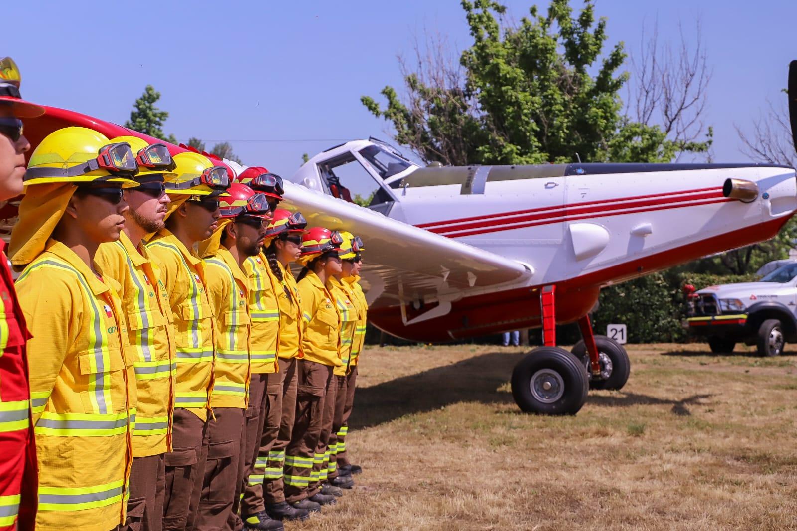 Por otra parte, el plan básico de la flota aérea para el combate considera 74 aeronaves, distribuidas en 43 helicópteros, 31 aviones, que incluyen dos aviones tankeros y cuatro aeronaves de coordinación. A la fecha, se han constituido el 100% de las aeronaves planificadas para este periodo con dos helicópteros livianos, cinco aviones cisterna, lo que hace un total de siete aeronaves para el combate de incendios.