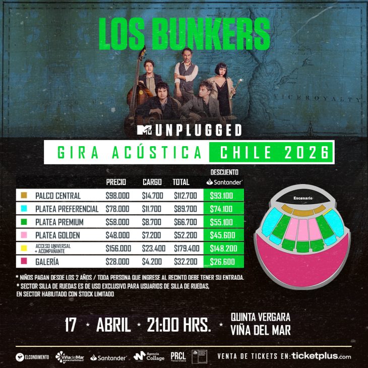 Las entradas para el cierre de Los Bunkers en la Quinta Vergara se venden a través de la plataforma oficial Ticketplus.