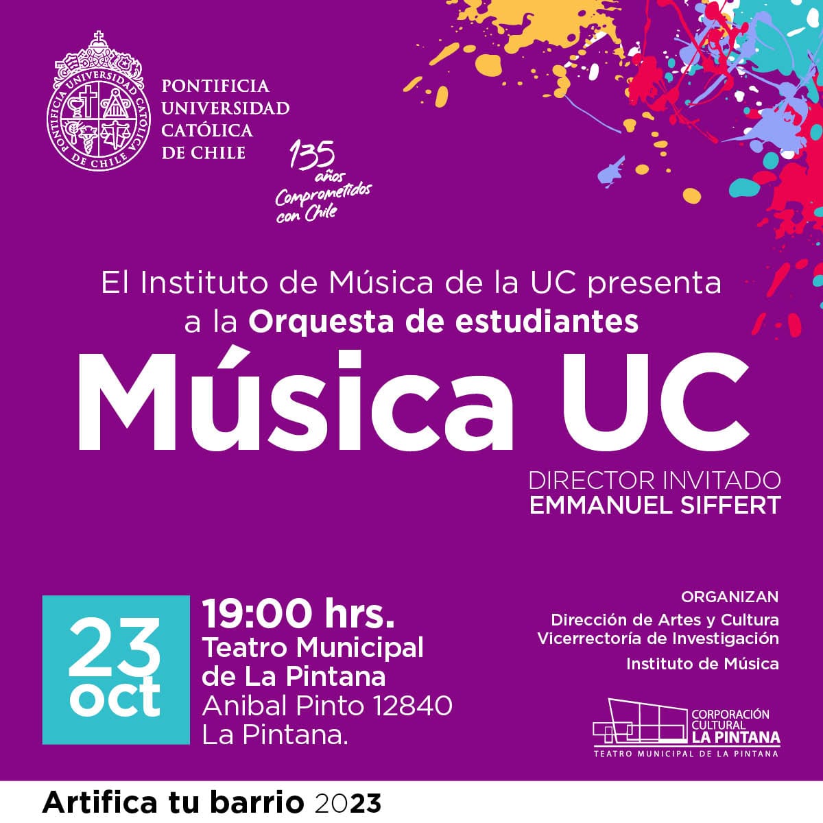 Este concierto hace coincidir dos voluntades que trabajan por la cultura: la del municipio de La Pintana y la de la Pontificia Universidad Católica, ambas coordinadas en el programa Artifica Tu Barrio, de la Dirección de Artes y Cultura de la Vicerrectoría de Investigación UC.
