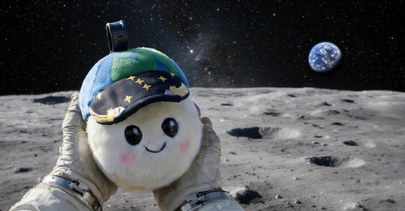 La mascota lunar tiene el tamaño de una pelota de softball, que lleva una gorra de béisbol como referencia a la pionera misión Apolo 8, de 1968.