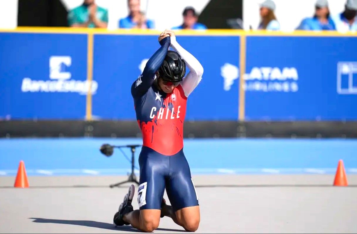 En una acción brutal, el bicampeón panamericano junior empujó desde atrás al chileno Emanuelle Silva (foto principal), quien se perfilaba para disputarle el oro al colombiano Andrés Jiménez en los 500 metros del patinaje de velocidad, lo que provocó que el maipucino cayera y quedara sin opción.