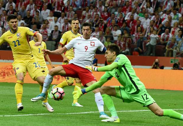 El goleador polaco y astro del Bayern Munich Robert Lewandowski anotó los tres tantos de su selección –dos de ellos de penal- que se mostró superior a una escuadra rumana encerrada inútilmente atrás y que solo se atrevió a atacar cuando ya perdía por goleada y quedaban pocos minutos para el término del encuentro.