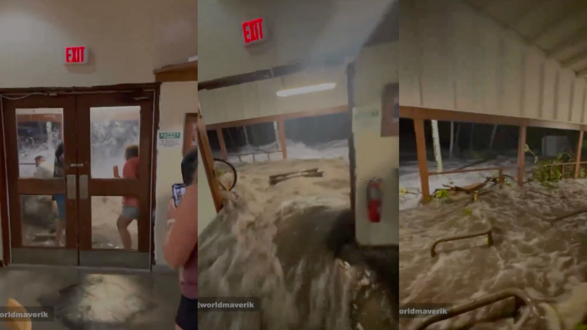 Una ola de 3 a 4 pies rompió las puertas del comedor del Ejército de #EEUU en Roi-Namur el sábado —una isla en el extremo norte del atolón de Kwajalein—, arrasando todo a… pic.twitter.com/i3dqqYcJZn