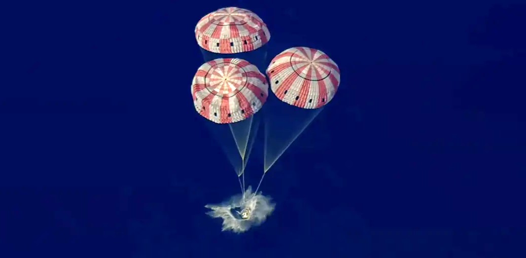 Tras una caída libre que duró unos 14 minutos, los cuatro astronautas retornaron sanos y salvos a la atmósfera terrestre.