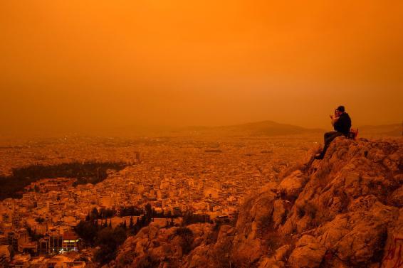 Atenas se ve envuelta en un inusual fenómeno cuando el cielo adquiere un tono naranja debido a la presencia de nubes de polvo del Sahara. Este fenómeno, conocido como «calima», es causado por vientos del desierto que transportan partículas de polvo a largas distancias.