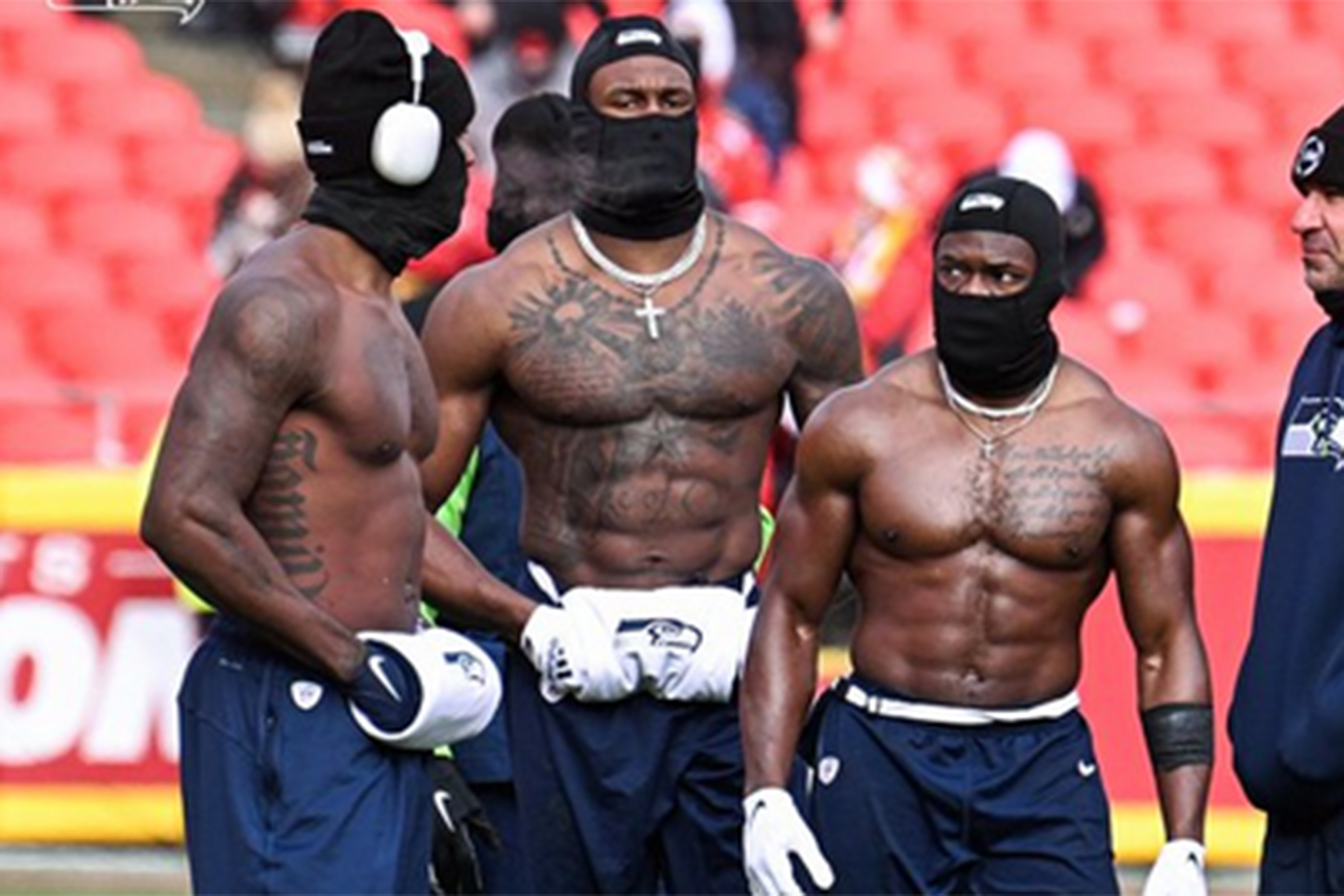 En la ciudad de Kansas están a -12ºC y los jugadores de los Seattle Seahawks tuvieron una particular idea para salir a calentar antes de enfrentarse a los Chiefs. Sin camiseta soportando las extremas condiciones. Esta singular forma se viralizó en las redes y lo puede ver a continuación.
