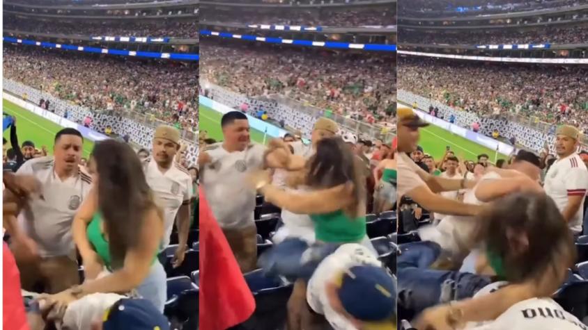 En medio del partido entre México y Qatar por la Copa de Oro en el estadio Levi’s Stadium, Santa Clara , California, que terminó 1-0 a favor de los árabes, se registró una brutal pelea en la barra azteca.