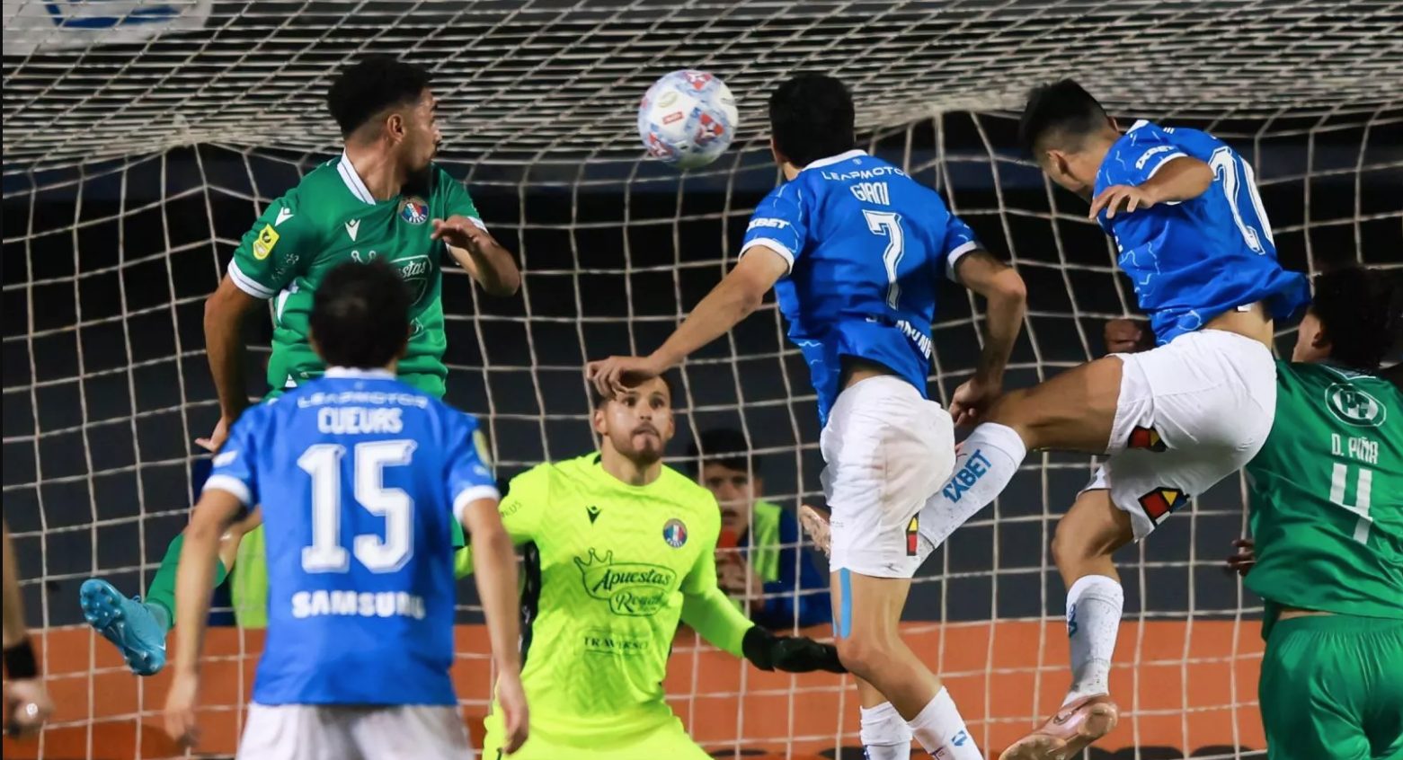 Juan Ignacio Díaz (26) mete el frentazo para marcar el gol del triunfo cruzado (Foto: PHOTOSPORT