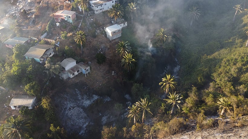 Esta mañana, en un sobrevuelo del Helicóptero de Carabineros de la Prefectura Aeropolicial en Viña del Mar, muestra los estragos que causó el megaincendio que afectó a Viña del Mar. El siniestro consumió 125 hectáreas, dejó una persona fallecida, 30 lesionados -de los cuales 27 son civiles y 3 bomberos-, todos de carácter leve.